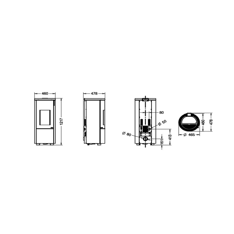 • Rauchrohr: Ø 80 mm, hinten zentriert; optional oben